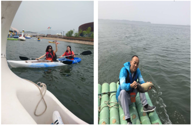 第三天,我們分別進行了水上活動和游樂場活動。水上皮劃艇、水上自行車讓大家暢游在水的世界里,這些活動不僅鍛煉人的身體又能體驗湖光山色,,還能增進彼此之間的感情。游樂場則是兒童的天地,在這個樂園中孩子們能夠忘記憂愁,盡情玩耍,充滿童趣的設施、裝飾,讓孩子們不僅能夠享受游戲的快樂,還能夠與其他小朋友一起分享快樂!