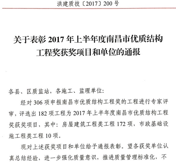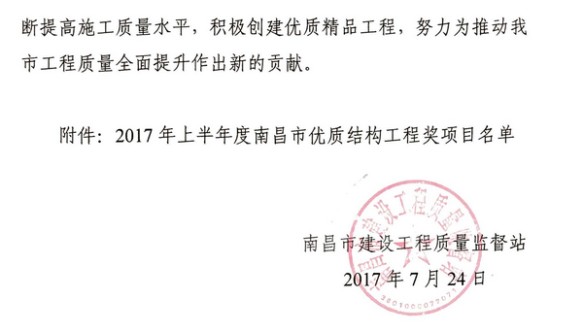 本報訊  由我公司承建的南昌市瑤湖郊野森林公園游客服務中心項目,在2017年度榮獲結構優良工程獎項。此次獲得的榮譽離不開中寧全體人員的共同努力,中寧在未來的發展中,也將秉承著“專業、優質”,不斷前行!