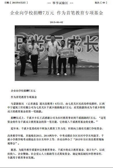 201561日,值六一兒童節到來之際,在貴州省畢節市干溪鄉干溪小學,舉辦了一場“六一兒童節活動”,江西省中寧建筑工程有限公司董事長胡少棟先生親臨現場,和孩子們一起享受著快樂時光。