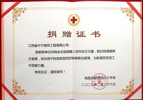 當前,疫情牽動著社會各界每一個人的心。為提供后勤物資保障,江西省中寧建筑工程有限公司向南昌市新建區紅十字會捐贈人民幣伍萬元。同時,公司組織員工積極踴躍參與社區各項防疫工作,中寧人以實際行動加入到這場戰“疫”中。